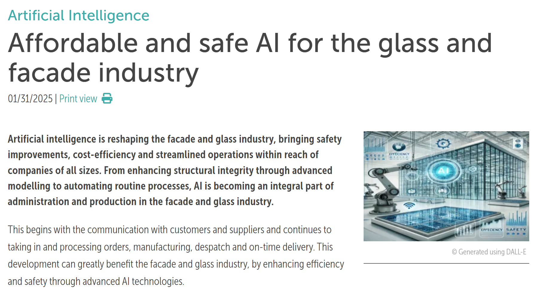 I’m excited to share my latest article published in GW-News: “Artificial Intelligence: Affordable and Safe AI for the Glass and Façade Industry.” In this piece, I take a closer look at how AI is transitioning from a futuristic concept to a practical, accessible tool that can deliver real value to glass fabricators, façade specialists, and glazing businesses.